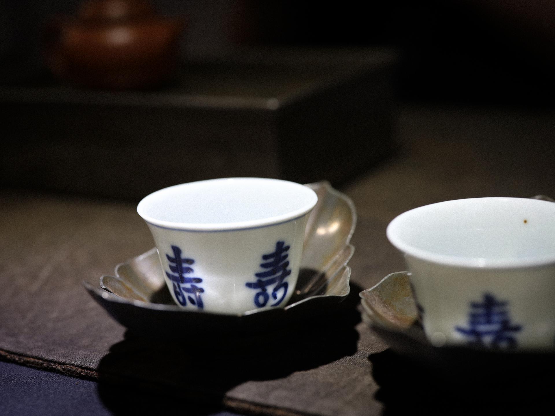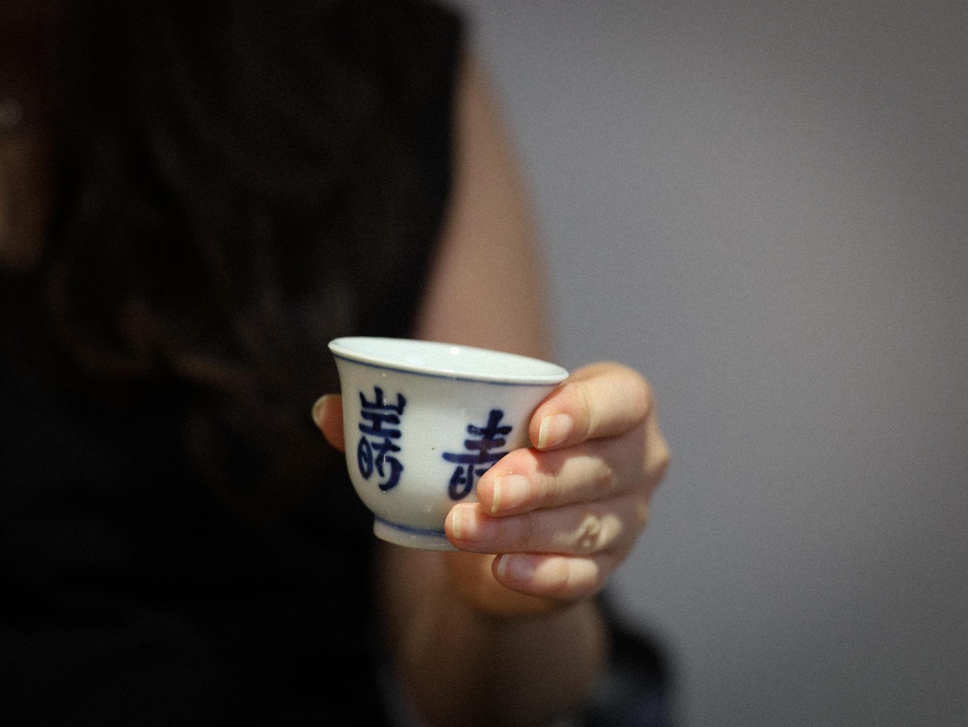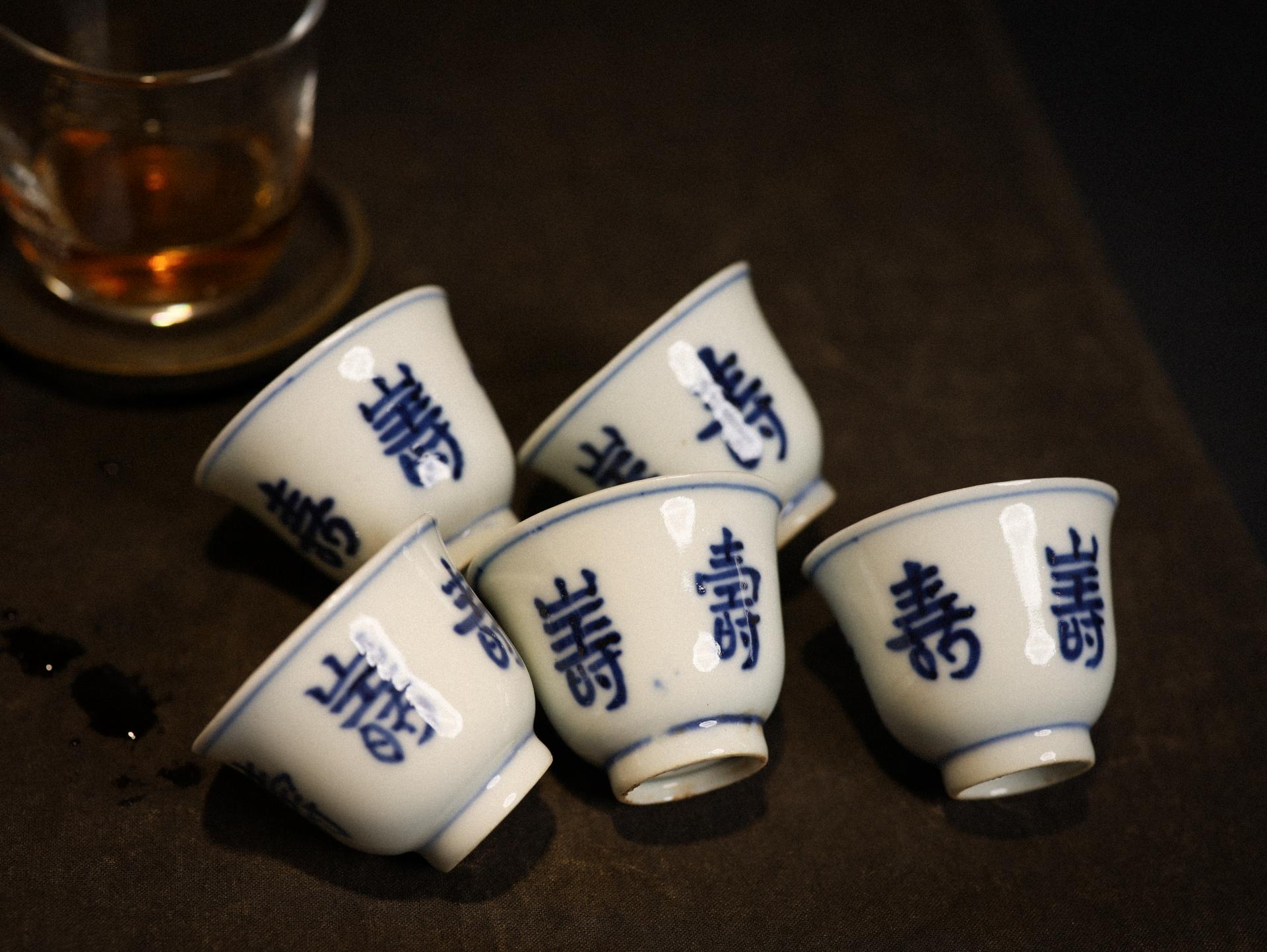 壽 문양 청화백자 골동 찻잔