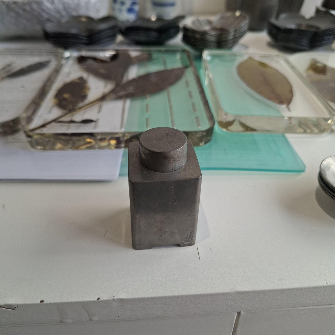 골동 미니 장방형 주석 차통